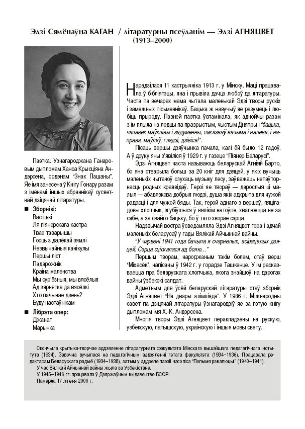 спісы аўтарскіх зборнікаў для дзяцей малодшага школьнага ўзросту; кароткі агляд жыццёвага і творчага шляху кожнага пісьменніка.