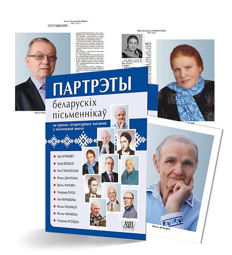 Камплект дэманстрацыйных матэрыялаў «Партрэты беларускіх пісьменнікаў» прысвечаны айчынным класікам дзіцячай літаратуры, з творамі якіх вучні знаёмяцца на ўроках чытання ў пачатковых класах. Выданне ўтрымлівае: