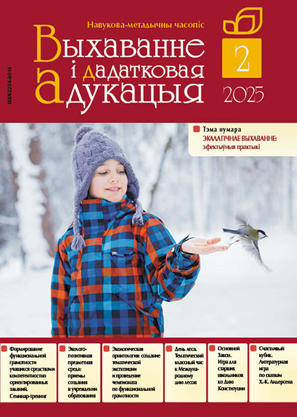Февральский номер журнала “Выхаванне і дадатковая адукацыя” посвящен теме «Экологическое воспитание: эффективные практики». Представлены методические рекомендации по созданию эколого-позитивной предметной среды в учреждении образования, даются примеры заданий для чемпионата по функциональной грамотности на основе орнитологического материала. Тема формирования функциональной грамотности учащихся подкрепляется разработкой семинара-тренинга для педагогов по созданию компетентностно ориентированных заданий.