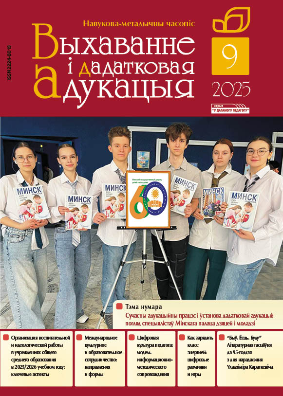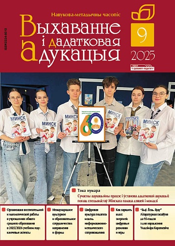 Публикации сентябрьского номера журнала «Выхаванне і дадатковая адукацыя» раскрывают образ учреждения дополнительного образования в современной образовательной среде на примере опыта работы Минского дворца детей и молодежи, которому в этом году исполнилось 60 лет. Специалисты рассказывают о моделировании системы профессионального роста педагогов в условиях инновационной образовательной среды, раскрывают актуальные направления и формы международного культурного и образовательного сотрудничества, представляют успешные инициативы по формированию гражданских и патриотических ценностей детей и молодежи. Значительное внимание уделяется механизмам развития цифровой культуры педагогов.
