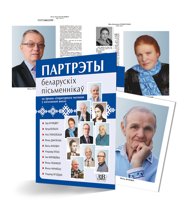 Камплект дэманстрацыйных матэрыялаў «Партрэты беларускіх пісьменнікаў» прысвечаны айчынным класікам дзіцячай літаратуры, з творамі якіх вучні знаёмяцца на ўроках чытання ў пачатковых класах. Выданне ўтрымлівае: