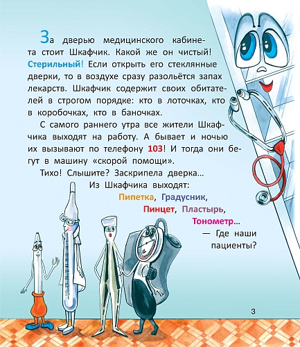 Книга Ирины Токаревой в увлекательной форме рассказывает маленьким читателям о приключениях обитателей медицинского шкафа.